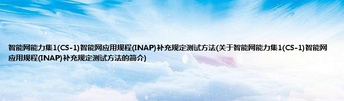 大家好,智能网能力集1,CS-1智能网应用规程,INAP补充规定测试方法,关于智能网能力集1,CS-1智能网应用规程,INAP补充规定测试方法的简介很多人还不知道,现在让我们一起来看看吧!