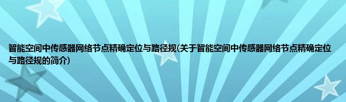本文关于智能空间中传感器网络节点精确定位与路径规的简介就讲解完毕,希望对大家有所帮助。
