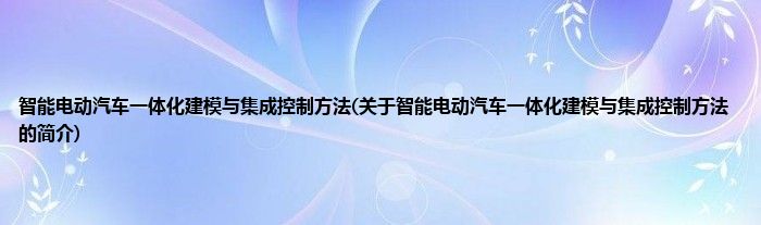 大家好,智能电动汽车一体化建模与集成控制方法,关于智能电动汽车一体化建模与集成控制方法的简介很多人还不知道,现在让我们一起来看看吧!