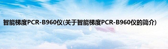 本文关于智能梯度PCR-B960仪的简介就讲解完毕,希望对大家有所帮助。