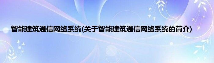 大家好,智能建筑通信网络系统,关于智能建筑通信网络系统的简介很多人还不知道,现在让我们一起来看看吧!