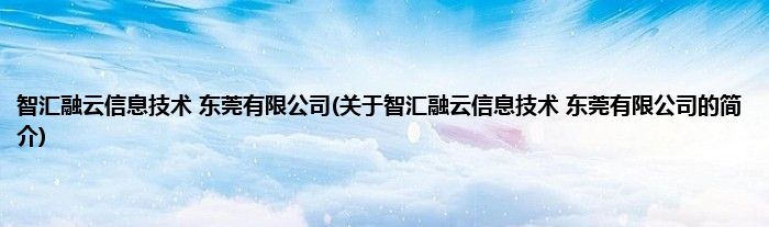 大家好,智汇融云信息技术 东莞有限公司,关于智汇融云信息技术 东莞有限公司的简介很多人还不知道,现在让我们一起来看看吧!
