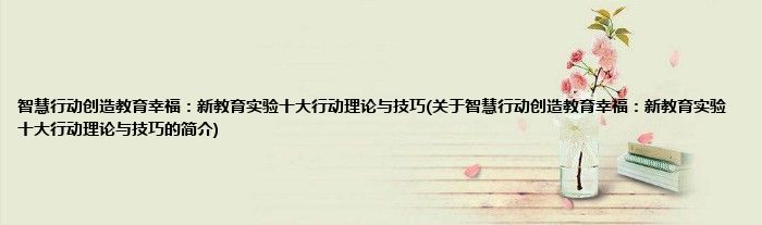 本文关于智慧行动创造教育幸福:新教育实验十大行动理论与技巧的简介就讲解完毕,希望对大家有所帮助。