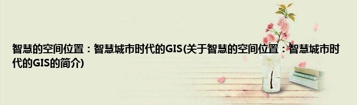 大家好,智慧的空间位置:智慧城市时代的GIS,关于智慧的空间位置:智慧城市时代的GIS的简介很多人还不知道,现在让我们一起来看看吧!