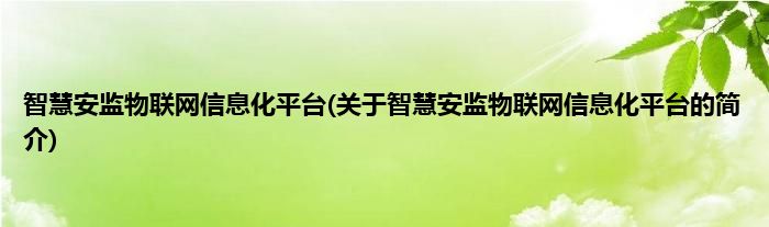 本文关于智慧安监物联网信息化平台的简介就讲解完毕,希望对大家有所帮助。