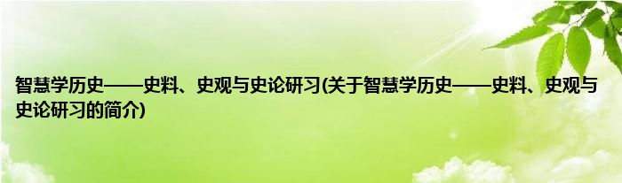 本文关于智慧学历史——史料、史观与史论研习的简介就讲解完毕,希望对大家有所帮助。
