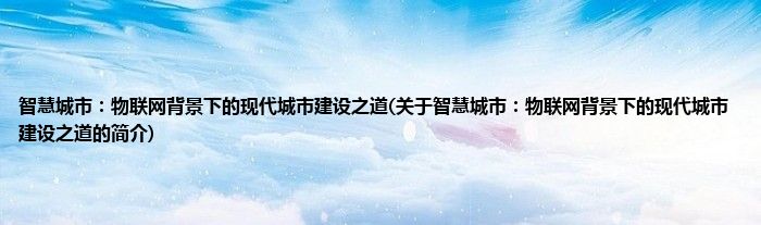 本文关于智慧城市:物联网背景下的现代城市建设之道的简介就讲解完毕,希望对大家有所帮助。