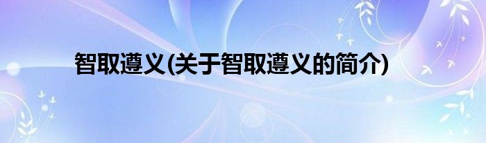大家好,智取遵义,关于智取遵义的简介很多人还不知道,现在让我们一起来看看吧!