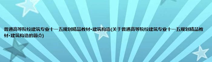 1、 《普通高等院校建筑专业十一五规划精品教材·建筑构造》是2008年华中科技大学出版社出版的图书。