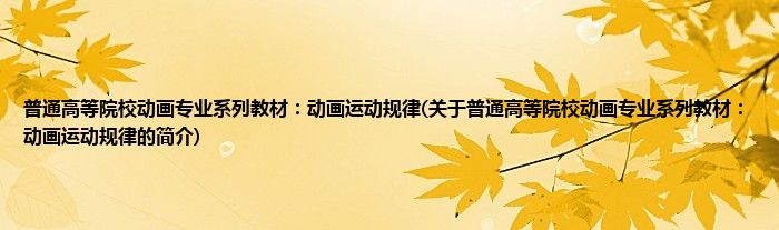 本文关于普通高等院校动画专业系列教材:动画运动规律的简介就讲解完毕,希望对大家有所帮助。