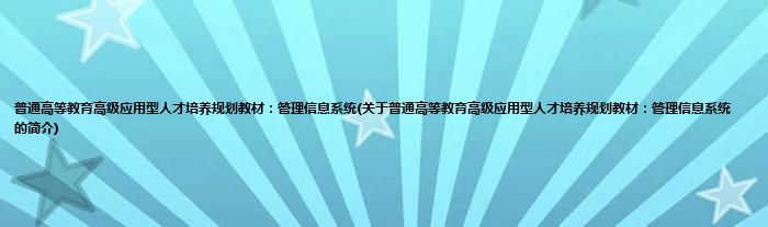 本文关于普通高等教育高级应用型人才培养规划教材:管理信息系统的简介就讲解完毕,希望对大家有所帮助。