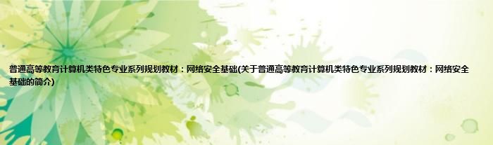 1、 《普通高等教育计算机类特色专业系列规划教材:网络安全基础》是2011年科学出版社出版的图书。