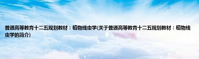 本文关于普通高等教育十二五规划教材:植物线虫学的简介就讲解完毕,希望对大家有所帮助。