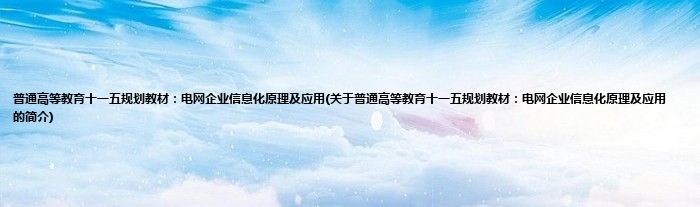 本文关于普通高等教育十一五规划教材:电网企业信息化原理及应用的简介就讲解完毕,希望对大家有所帮助。