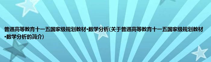 大家好,普通高等教育十一五国家级规划教材·数学分析,关于普通高等教育十一五国家级规划教材·数学分析的简介很多人还不知道,现在让我们一起来看看吧!