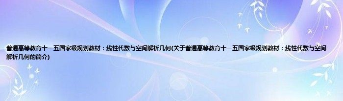 大家好,普通高等教育十一五国家级规划教材:线性代数与空间解析几何,关于普通高等教育十一五国家级规划教材:线性代数与空间解析几何的简介很多人还不知道,现在让我们一起来看看吧!