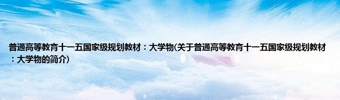大家好,普通高等教育十一五国家级规划教材:大学物,关于普通高等教育十一五国家级规划教材:大学物的简介很多人还不知道,现在让我们一起来看看吧!