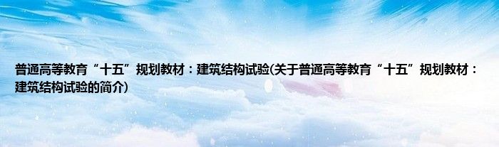 本文关于普通高等教育“十五”规划教材:建筑结构试验的简介就讲解完毕,希望对大家有所帮助。