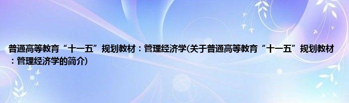 本文关于普通高等教育“十一五”规划教材:管理经济学的简介就讲解完毕,希望对大家有所帮助。
