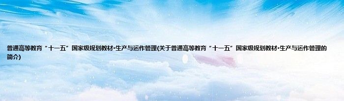 1、 《普通高等教育"十一五"国家级规划教材·生产与运作管理》第一版是教育部“高等教育面向2l世纪教学内容和课程体系改革计划”的研究成果,是面向21世纪课程教材和教育部管理学科“九五”规划教材,是普通高等教育“九五”国家级重点教材。