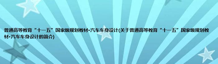 大家好,普通高等教育“十一五”国家级规划教材·汽车车身设计,关于普通高等教育“十一五”国家级规划教材·汽车车身设计的简介很多人还不知道,现在让我们一起来看看吧!