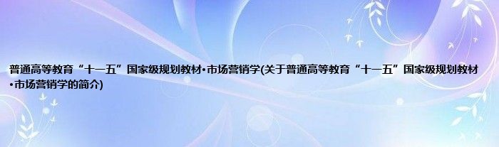 本文关于普通高等教育“十一五”国家级规划教材·市场营销学的简介就讲解完毕,希望对大家有所帮助。