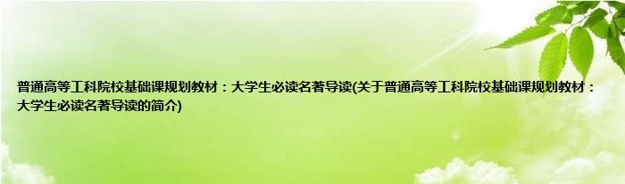 本文关于普通高等工科院校基础课规划教材:大学生必读名著导读的简介就讲解完毕,希望对大家有所帮助。