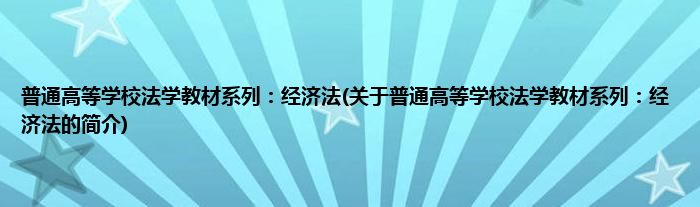 本文关于普通高等学校法学教材系列:经济法的简介就讲解完毕,希望对大家有所帮助。