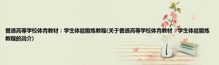 本文关于普通高等学校体育教材:学生体能锻炼教程的简介就讲解完毕,希望对大家有所帮助。
