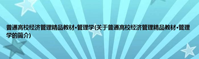 本文关于普通高校经济管理精品教材·管理学的简介就讲解完毕,希望对大家有所帮助。
