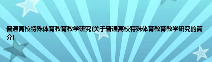 本文关于普通高校特殊体育教育教学研究的简介就讲解完毕,希望对大家有所帮助。