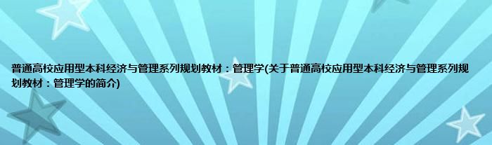 本文关于普通高校应用型本科经济与管理系列规划教材:管理学的简介就讲解完毕,希望对大家有所帮助。