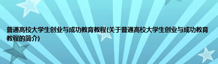大家好,普通高校大学生创业与成功教育教程,关于普通高校大学生创业与成功教育教程的简介很多人还不知道,现在让我们一起来看看吧!