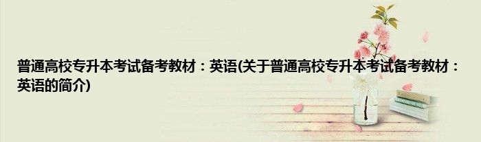 本文关于普通高校专升本考试备考教材:英语的简介就讲解完毕,希望对大家有所帮助。
