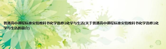 大家好,普通高中课程标准实验教科书化学选修1化学与生活,关于普通高中课程标准实验教科书化学选修1化学与生活的简介很多人还不知道,现在让我们一起来看看吧!