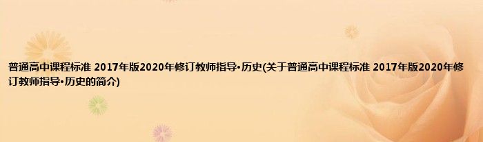 本文关于普通高中课程标准 2017年版2020年修订教师指导·历史的简介就讲解完毕,希望对大家有所帮助。