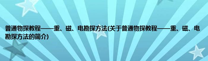 本文关于普通物探教程——重、磁、电勘探方法的简介就讲解完毕,希望对大家有所帮助。
