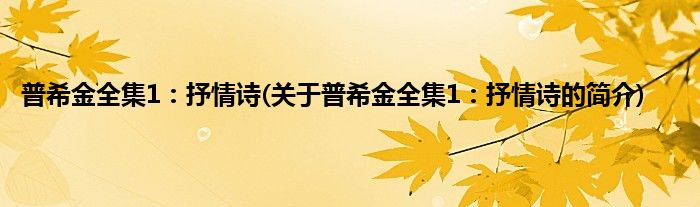 本文关于普希金全集1:抒情诗的简介就讲解完毕,希望对大家有所帮助。