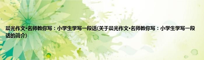 本文关于晨光作文·名师教你写:小学生学写一段话的简介就讲解完毕,希望对大家有所帮助。