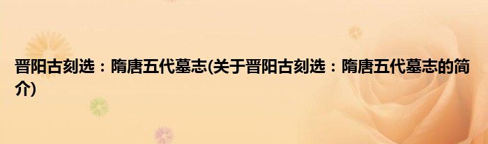 本文关于晋阳古刻选:隋唐五代墓志的简介就讲解完毕,希望对大家有所帮助。