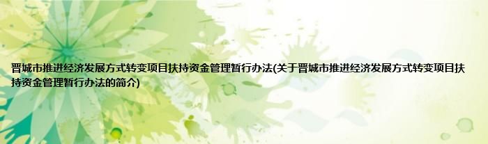 大家好,晋城市推进经济发展方式转变项目扶持资金管理暂行办法,关于晋城市推进经济发展方式转变项目扶持资金管理暂行办法的简介很多人还不知道,现在让我们一起来看看吧!
