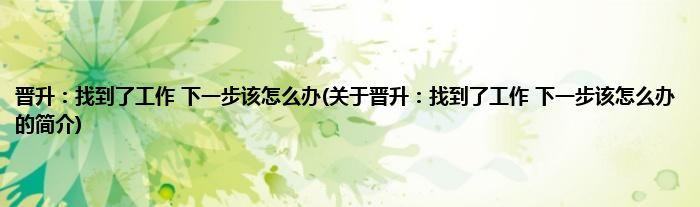 大家好,晋升:找到了工作,下一步该怎么办,关于晋升:找到了工作,下一步该怎么办的简介很多人还不知道,现在让我们一起来看看吧!