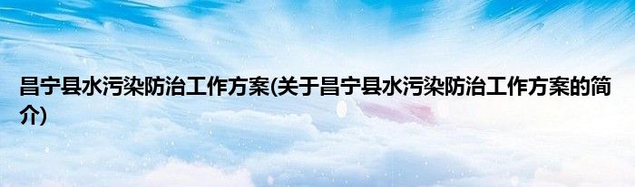 本文关于昌宁县水污染防治工作方案的简介就讲解完毕,希望对大家有所帮助。