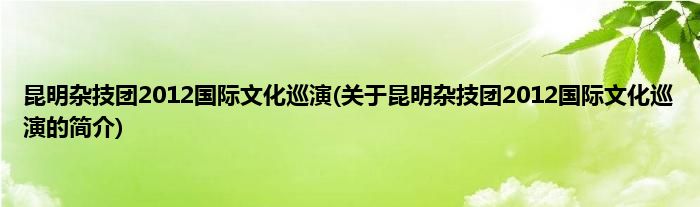 本文关于昆明杂技团2012国际文化巡演的简介就讲解完毕,希望对大家有所帮助。