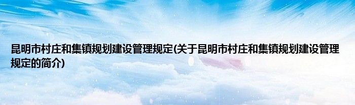 昆明市村庄和集镇规划建设管理规定(关于昆明市村庄和集镇规划建设管理规定的简介)
