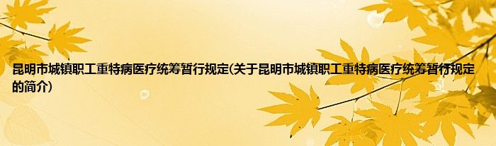 昆明市城镇职工重特病医疗统筹暂行规定(关于昆明市城镇职工重特病医疗统筹暂行规定的简介)
