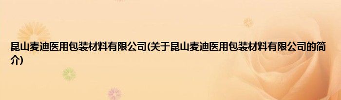 本文关于昆山麦迪医用包装材料有限公司的简介就讲解完毕,希望对大家有所帮助。