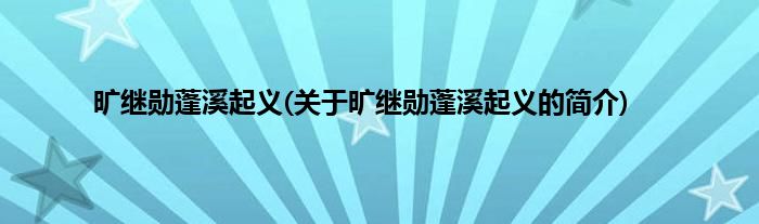 旷继勋蓬溪起义(关于旷继勋蓬溪起义的简介)