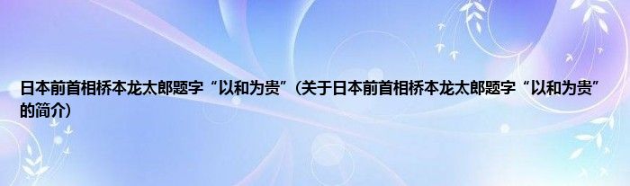 本文关于日本前首相桥本龙太郎题字“以和为贵”的简介就讲解完毕,希望对大家有所帮助。