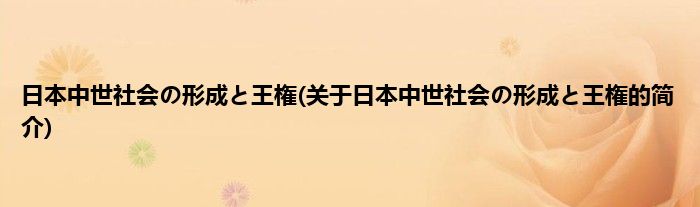 本文关于日本中世社会の形成と王権的简介就讲解完毕,希望对大家有所帮助。